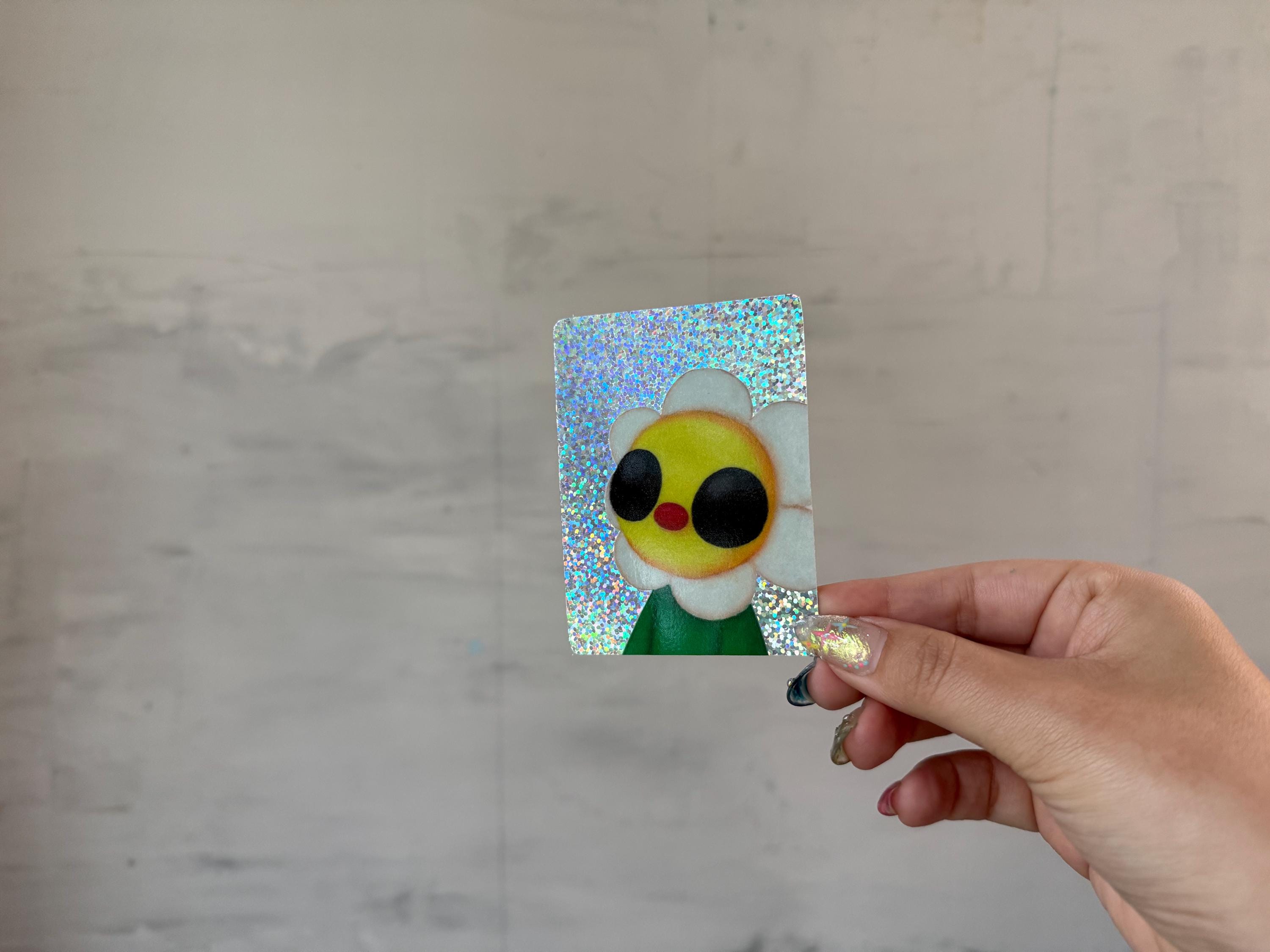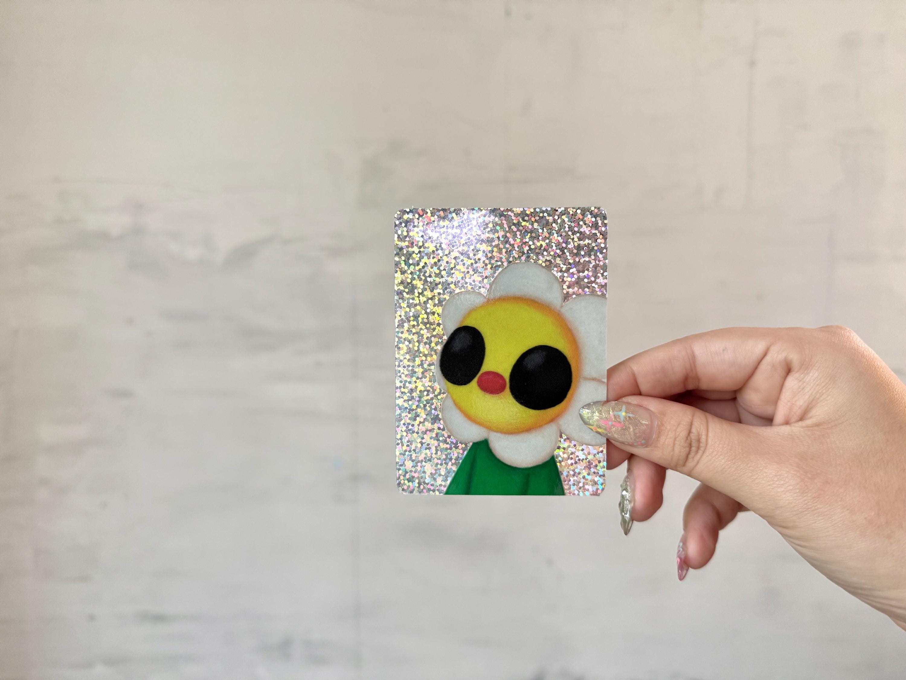 Sticker is Vinyl with a glossy finish, holographic background, top row dishwasher safe, and super cute!