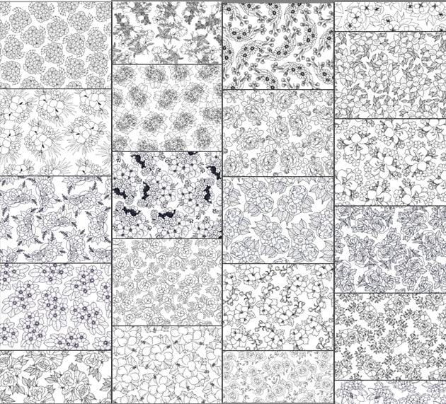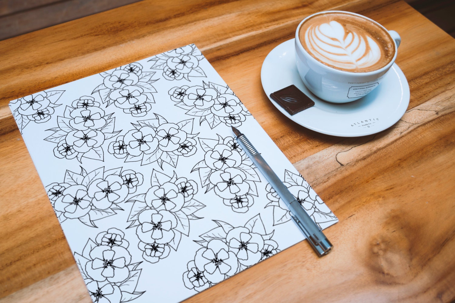 This PDF includes 21 repeating hand drawn flower pieces for coloring. Great for all ages but as some pages are a bit more intricate we'd suggest ages 10+. Most fun for teens and adults.